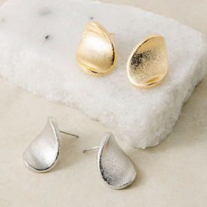 Brushed Curved Oval Stud Earrings