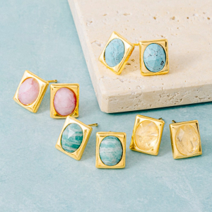 Square Faceted Stone Stud Earrings