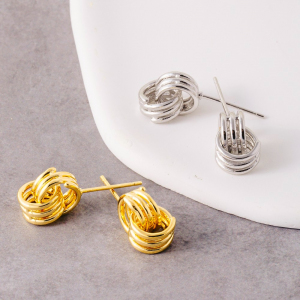 Gold Dipped Knotted Hoops Stud Earrings