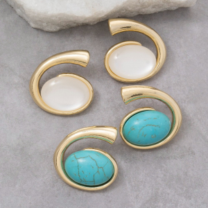 Abstract Oval Turquoise Stone Stud Earrings