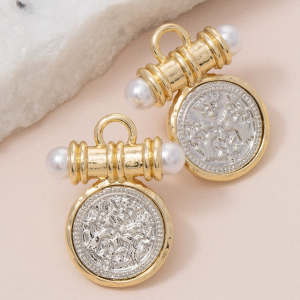 Pearl Bar Two Tone Coin Stud Earrings