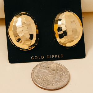 Gold Dipped Geometric Oval Shield Stud Earrings