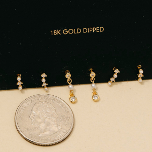 Gold Dipped Pearl And Cz Dainty Stud Earrings Set