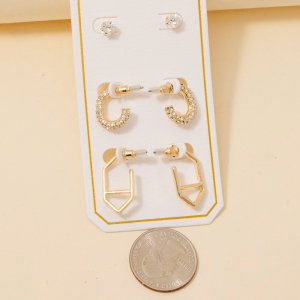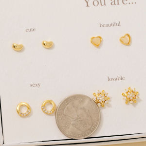 Gold Dipped Cluster And Heart Stud Earrings Set