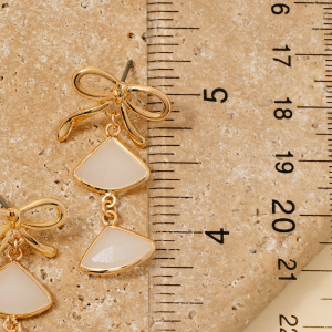 Faceted Gems Dangle Ribbon Bow Stud Earrings