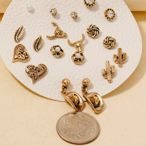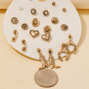 Heart Floral And Pearl 10 Pair Stud Earrings Set