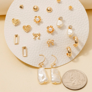 Mixed Pearl And Hearts 10 Pair Stud Earrings Set