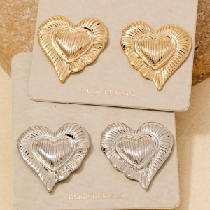 Seashell Heart And Ribbon Bow Stud Earrings Set