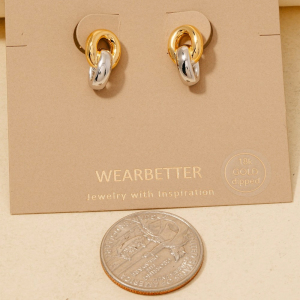 Gold Plated Two Tone Layered Hoop Stud Earrings