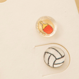 Acrylic Dome Ping Pong And Volley Ball Stud Earrings Set