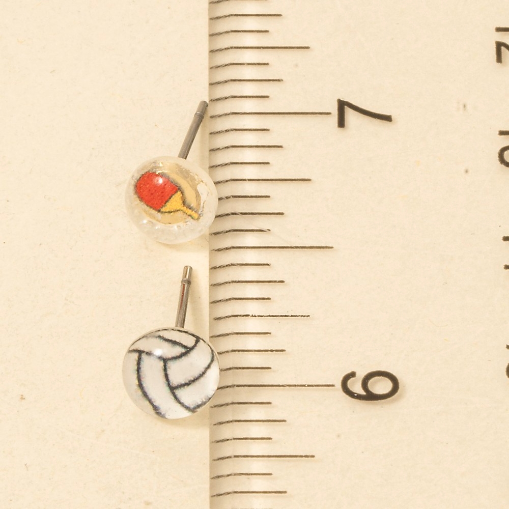 • Add some edge to your wardrobe, this pair of stud earrings reveals an intricate acrylic dome ping pong and volley ball set design. Perfect for any occasion, this versatile pair of stud earrings will enhance any outfit you wear. This item is sold in packs of 1.
