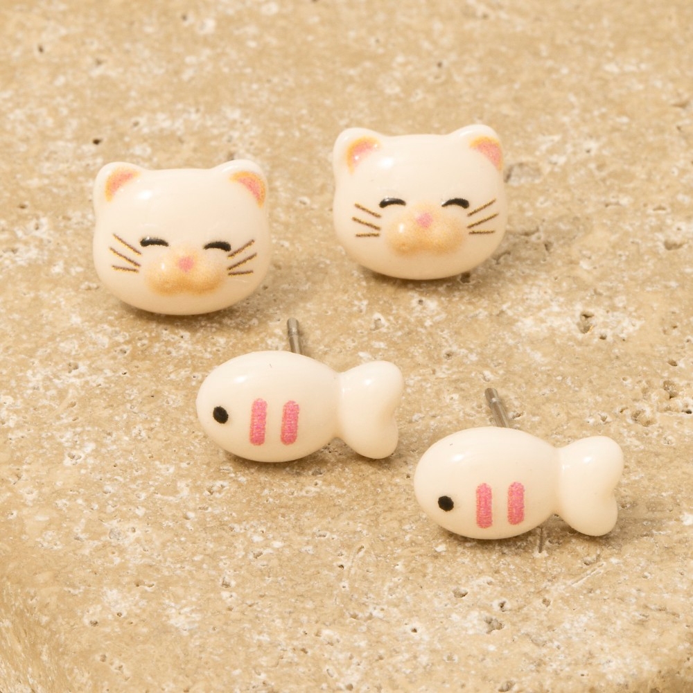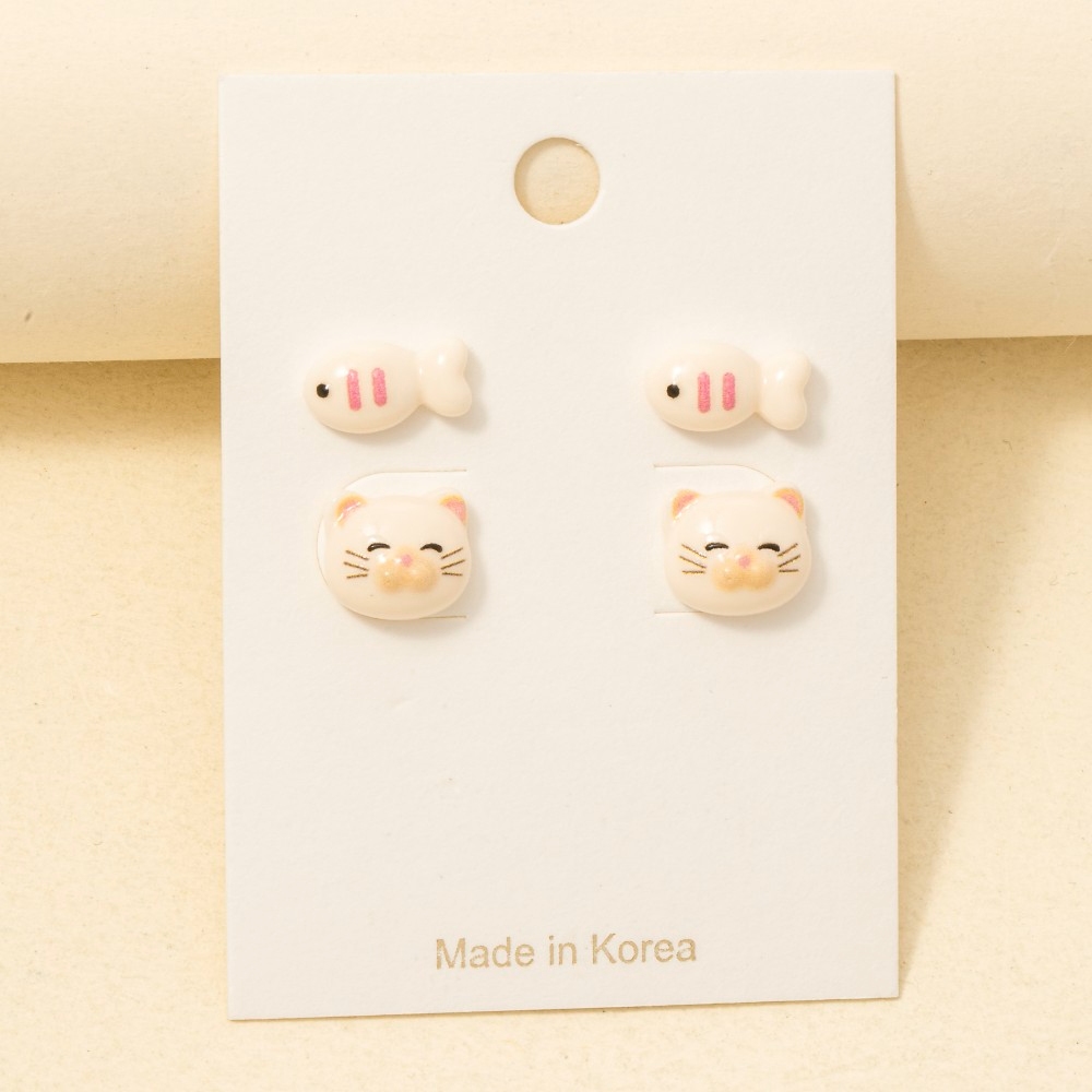 The perfect way to add some edge to your look, this pair of stud earrings features an exceptional cat and fish acrylic set design. Elevate your fashion game with this versatile pair of stud earrings, seamlessly integrating into your signature style. This item is sold in packs of 1.