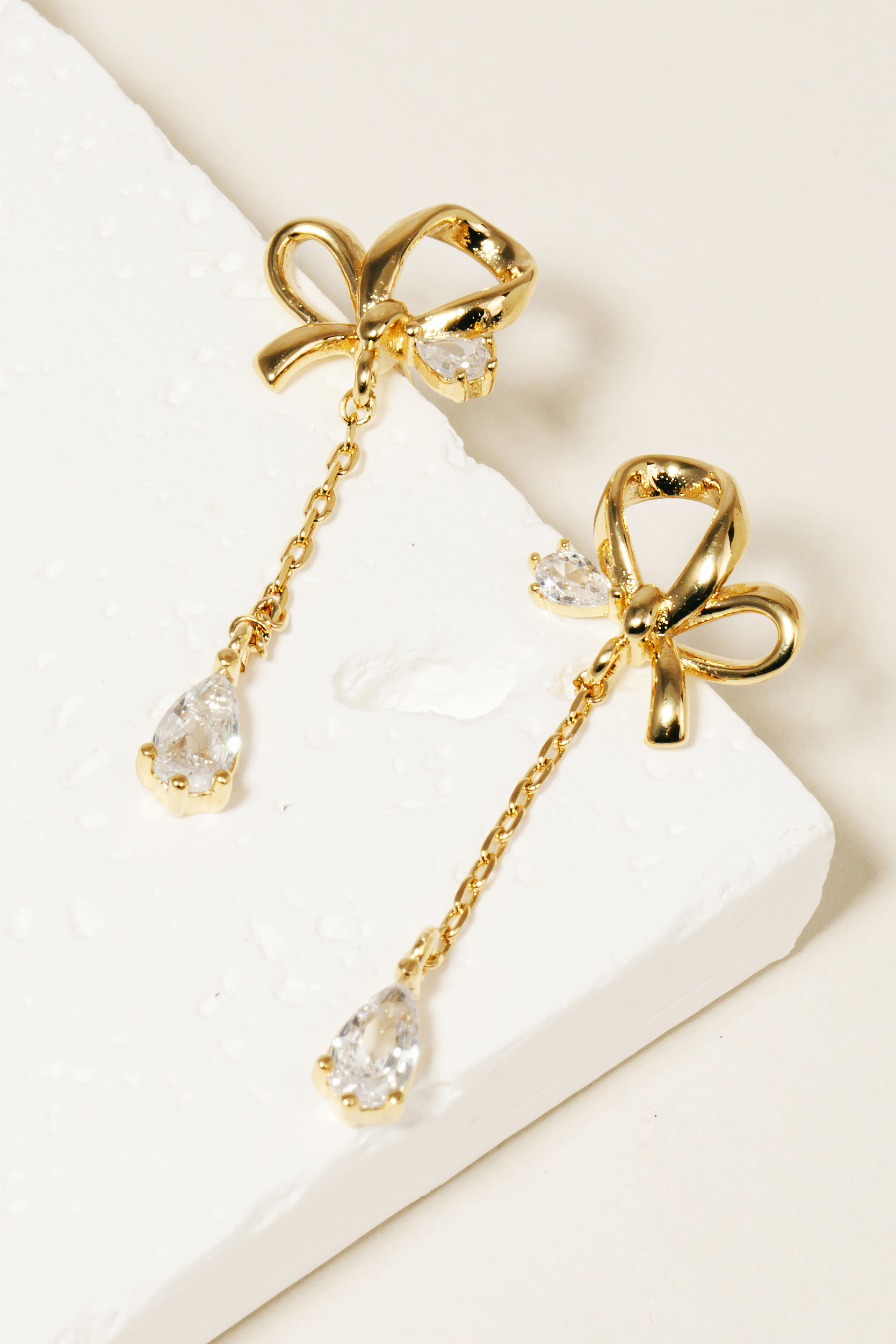 • A true work of art, this pair of stud earrings highlights a special chain dangle rhinestone bow design. Elevate your fashion IQ with this versatile accessory, designed to seamlessly integrate into any style profile. Available in G and S. This item is sold in packs of 2.
