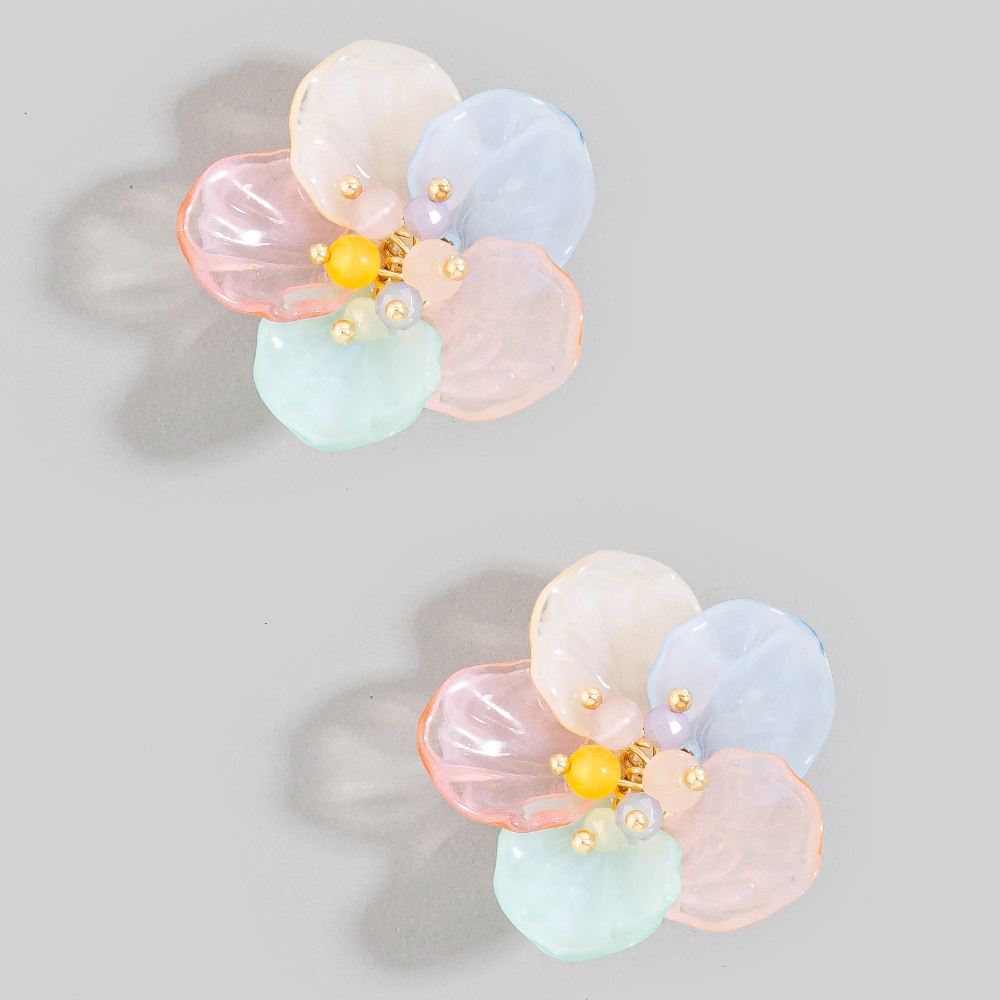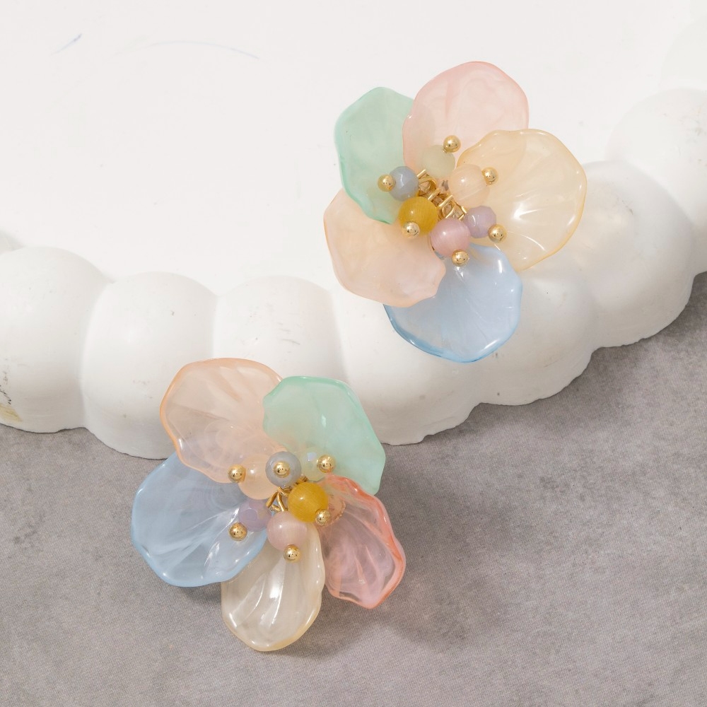 • A bold and daring choice, perfect for those who want to stand out from the crowd, this pair of stud earrings flaunts a luxurious colorful acrylic flower petals design. This item is a great way to add some texture and dimension to any outfit. Available in LMUL. This item is sold in packs of 1.