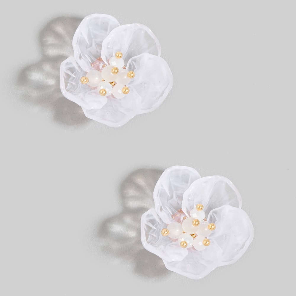 • This pair of stud earrings is made with 90% Acrylic 10% Brass.