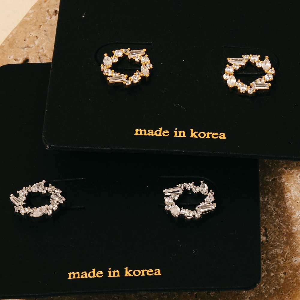 • This pair of stud earrings is made with 60% Brass and 40% Cubic Zirconia.