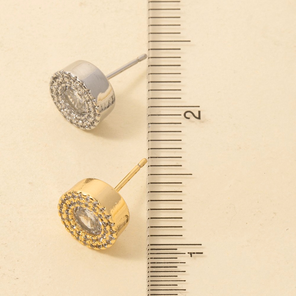 • This pair of stud earrings is made with 60% Cz 40% Brass.