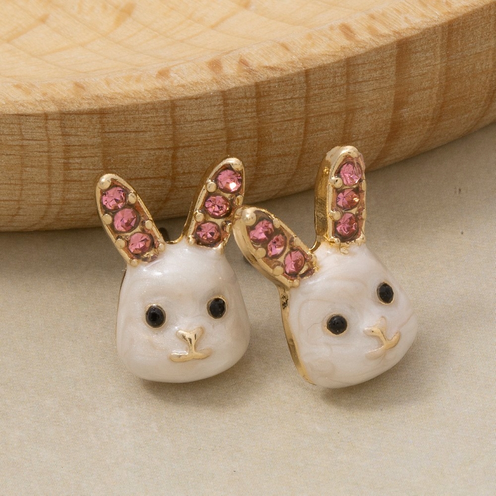 • A piece that will never go out of style, this pair of stud earrings possesses a fine enamel rabbit head design. Discover the magic of accessorizing with this versatile pair of stud earrings, effortlessly upgrading the style quotient of any outfit. Available in WHT. This item is sold in packs of 1.
