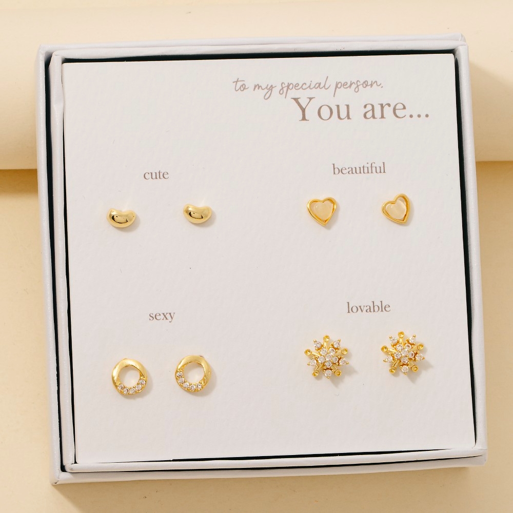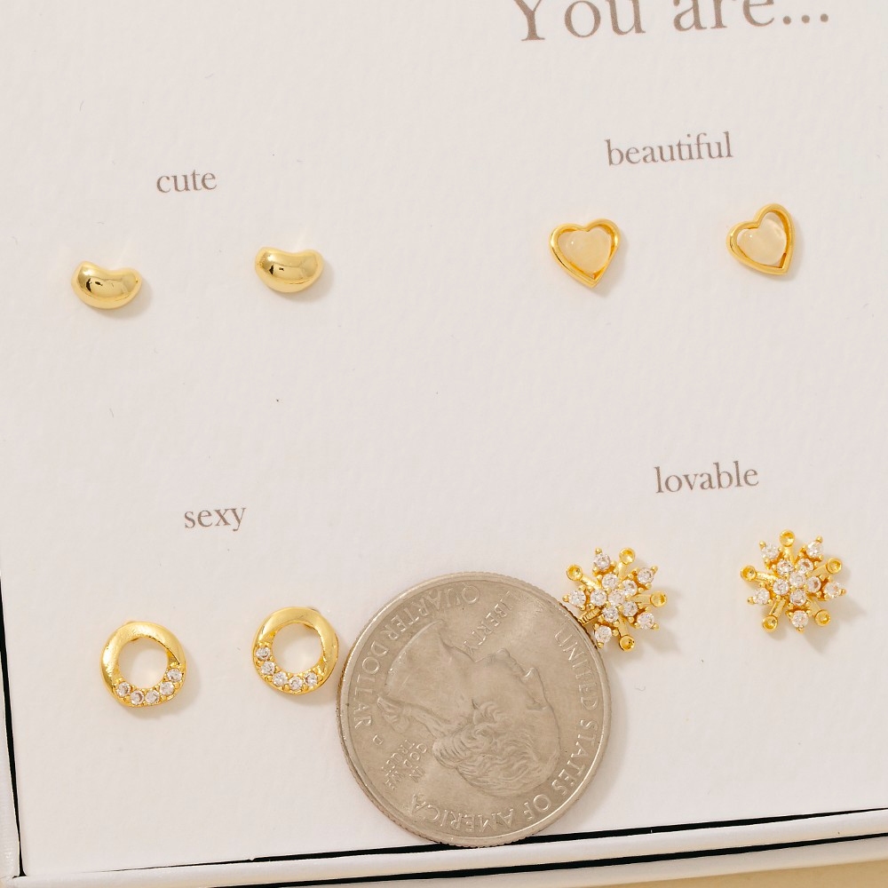 - Elevate any look, this pair of stud earrings radiates a sleek gold dipped cluster and heart set design. Transform your outfit into a fashion masterpiece with this versatile pair of stud earrings, an essential for the style-conscious individual. Available in GD. This item is sold in packs of 1.