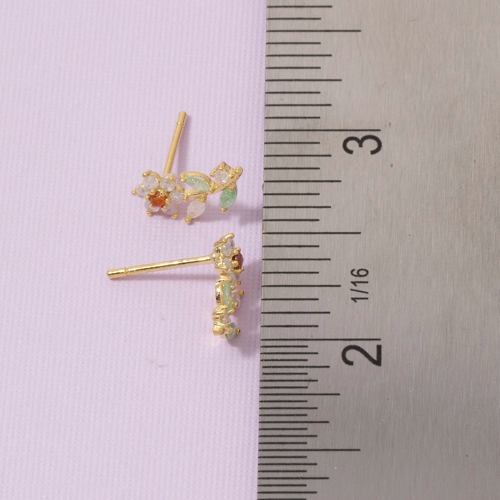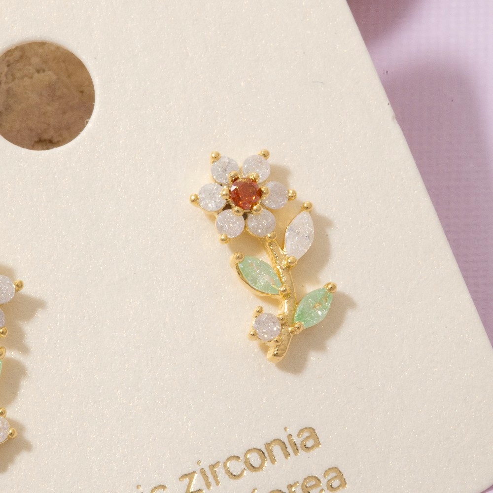 A piece that will never go out of style, this pair of stud earrings encompasses a grand gold dipped cubic zirconia flower design. This pair of stud earrings is the perfect way to add a touch of elegance to any outfit. Available in G,S. This item is sold in packs of 1.