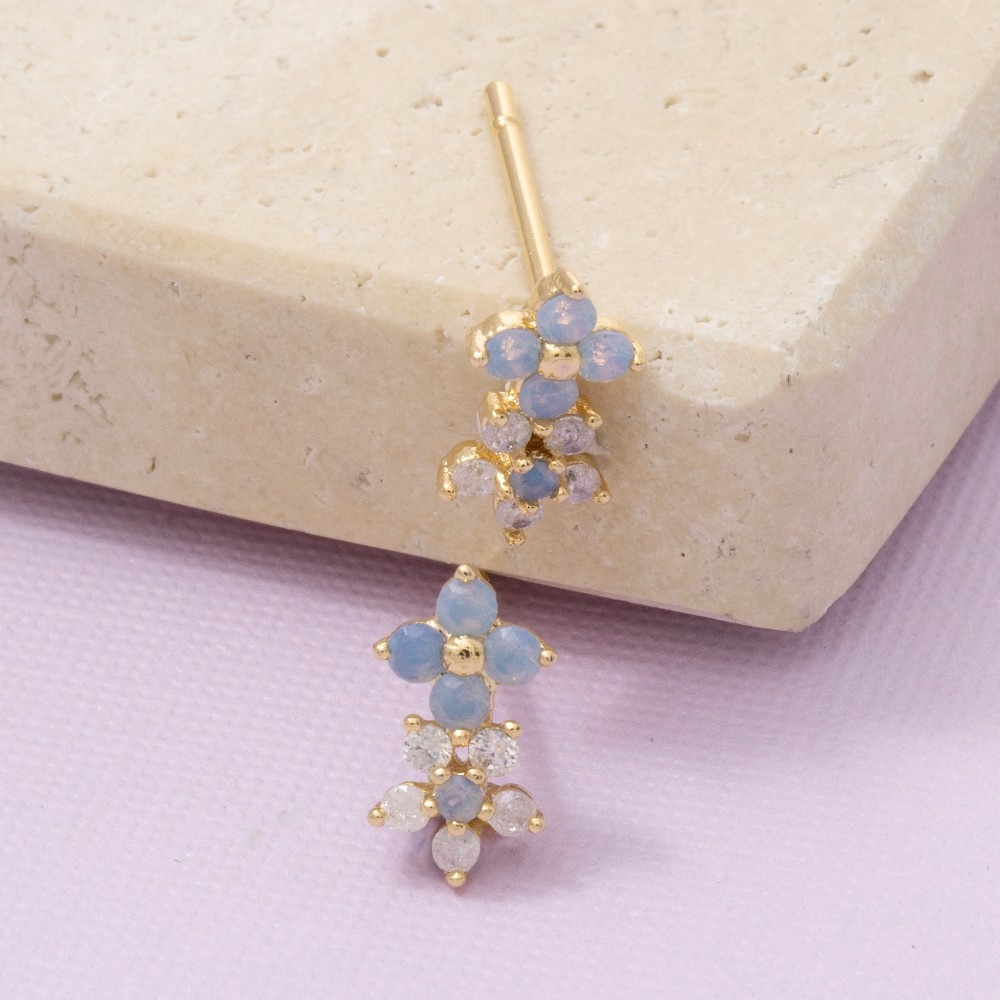 • This piece is perfect for those who want to showcase their unique style, this pair of stud earrings displays a unique gold dipped cubic zirconia mini flower design. Infuse elegance into your daily wardrobe with the versatile charm of this must-have pair of stud earrings. Available in G. This item is sold in packs of 1.