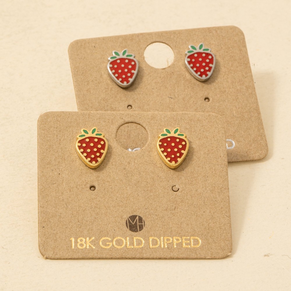 Uniquely designed and endlessly stylish, this trending pair of earrings incorporates a remarkable gold dipped epoxy strawberry stud earrings design. This item adds the perfect finishing touch to any outfit, making it stand out from the crowd. Available in G, S. This item is sold in packs of 12.