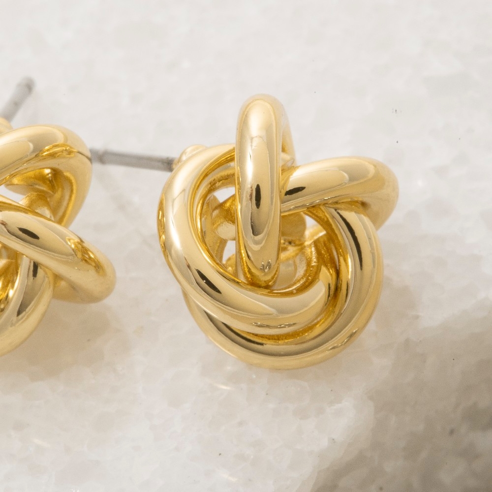 Perfect for any fashion-forward individual, this pair of stud earrings encompasses a grand gold dipped knotted design. The perfect way to complete any outfit, whether you're dressing up or keeping it casual. Available in GOLD. This item is sold in packs of 1.