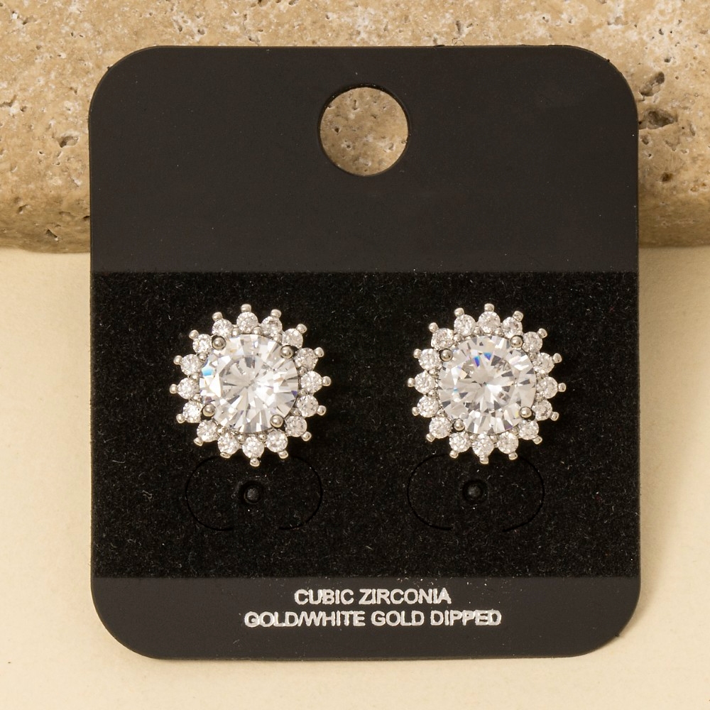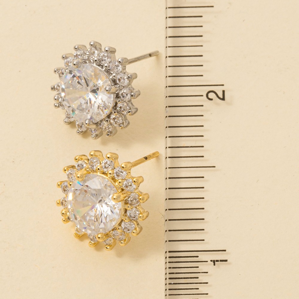• This pair of stud earrings is made with 60% Cz 40% Brass.