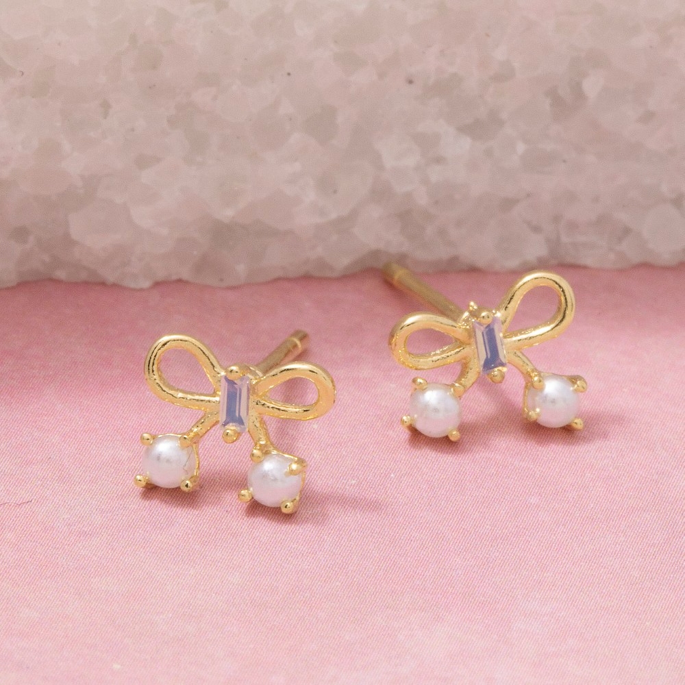 • The perfect way to complete any outfit, this pair of stud earrings adds a distinctive gold dipped mini ribbon bow design. A must-have pair of stud earrings that effortlessly enhances your style, no matter the occasion. Available in G. This item is sold in packs of 1.