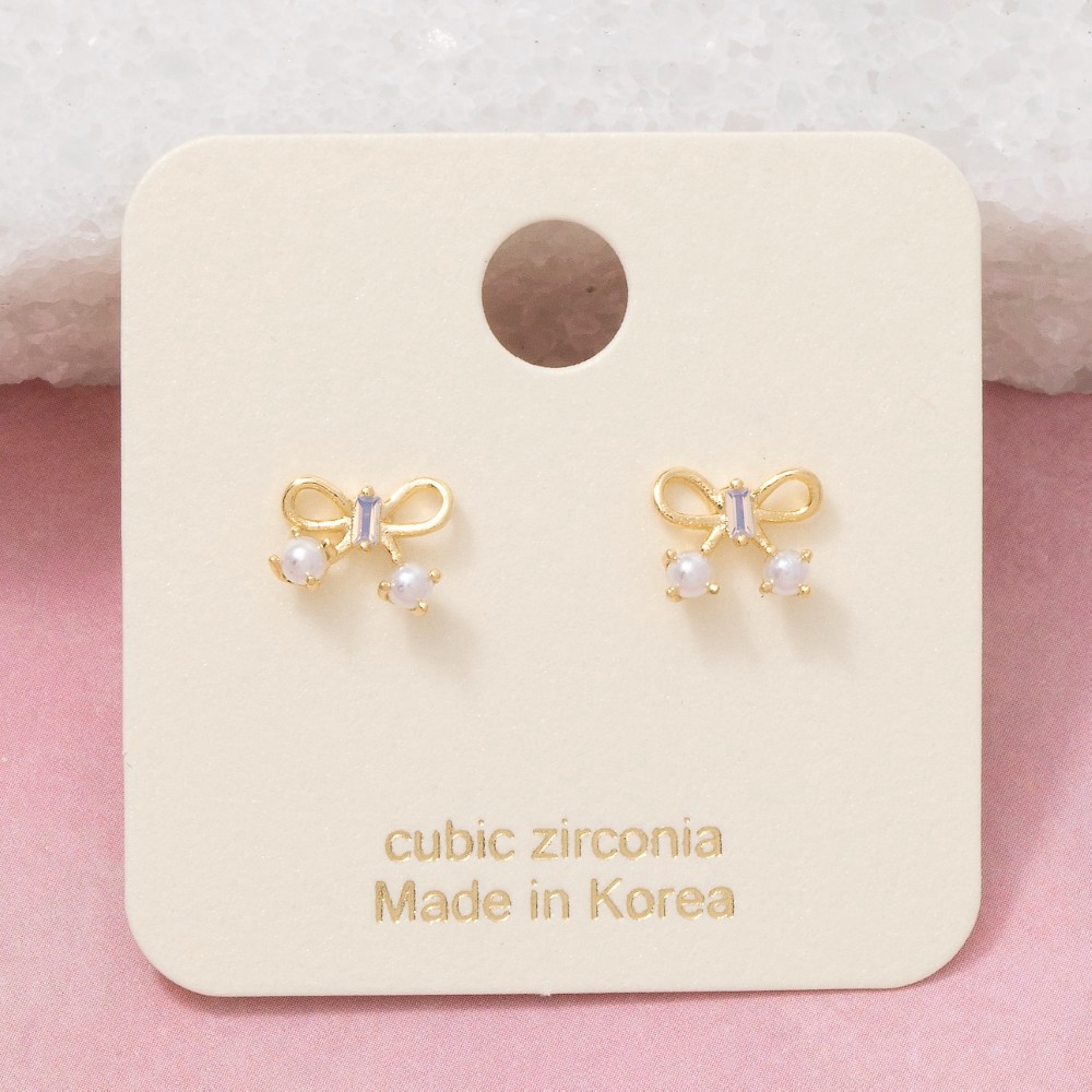 Gold Dipped Cz Pave Bow Ribbon Stud Earrings