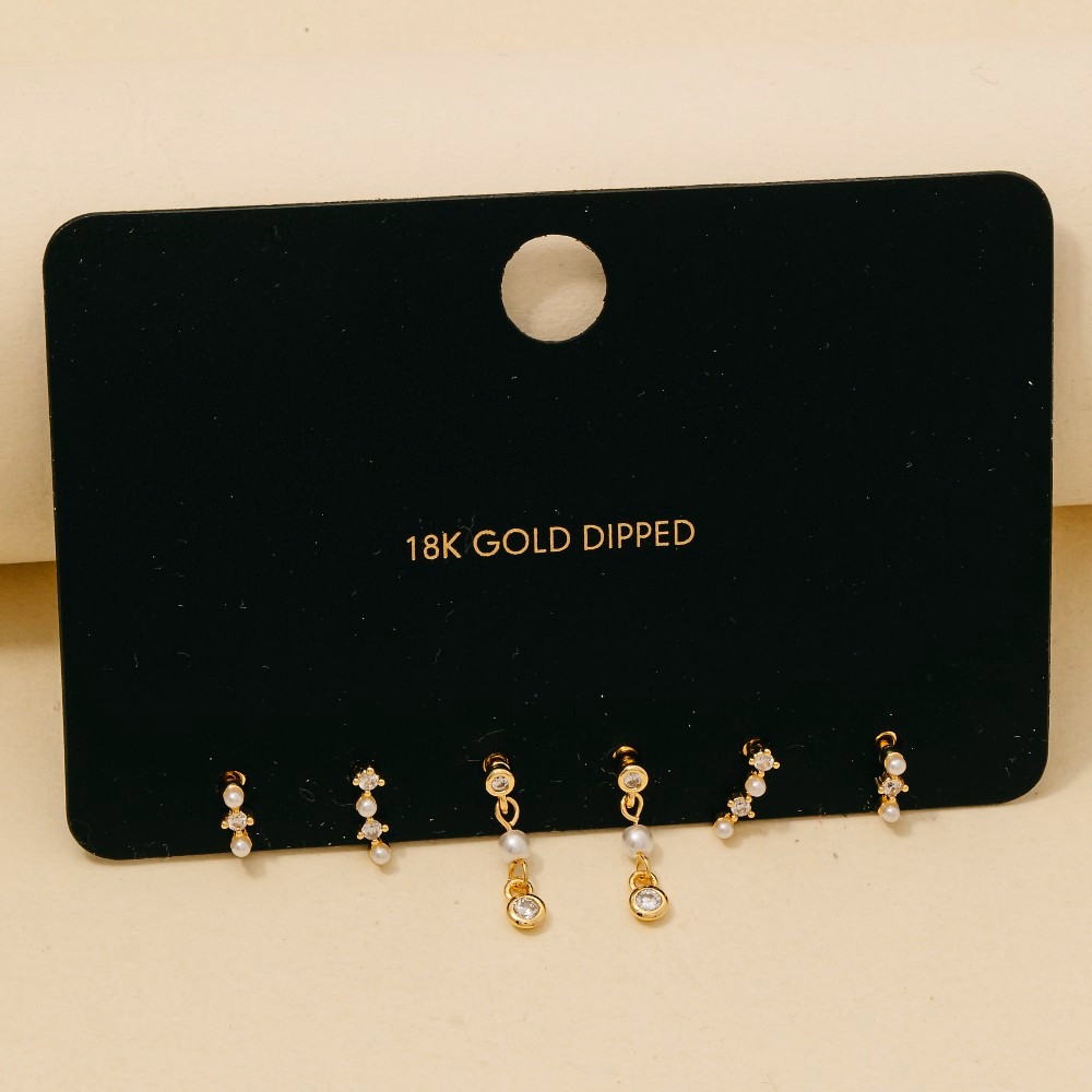 - A must-have for any fashion-forward individual, this pair of columbus jewelry stud earrings carries a charming gold dipped pearl and cubic zirconia dainty set design. This item is ideal for those who want to add some personality to their wardrobe without being too bold. Available in NO COLOR. This item is sold in packs of 1.