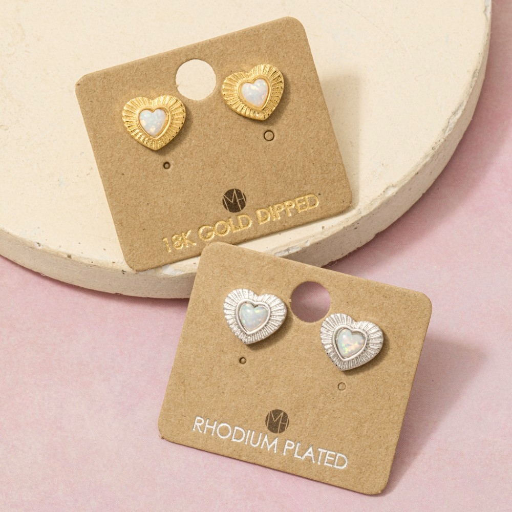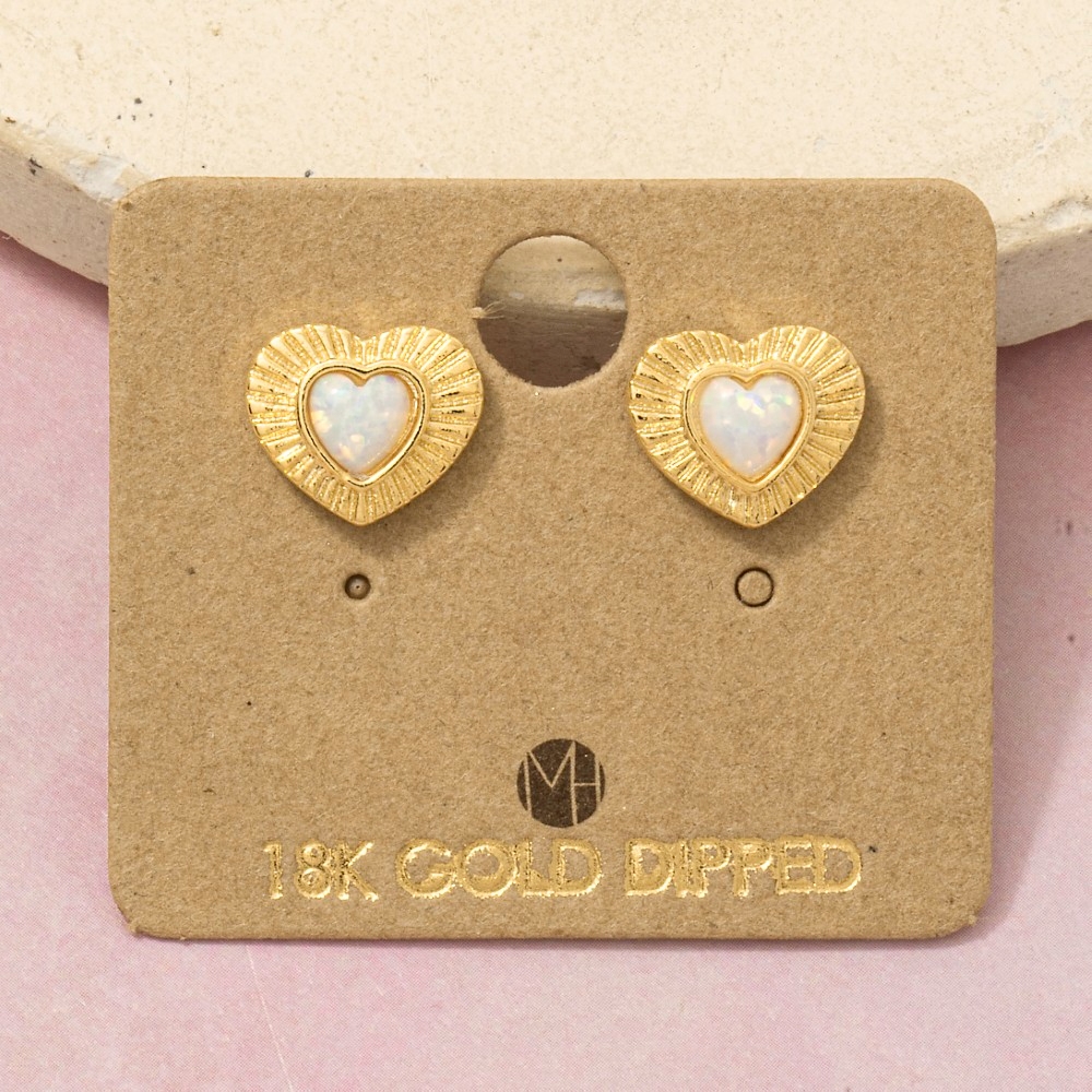 Uniquely designed and endlessly stylish, this pair of stud earrings shows off a distinctive gold dipped vintage heart opal design. Perfect for dressing up your favorite outfit, this pair of stud earrings is a must-have. Available in G, S. This item is sold in packs of 1.