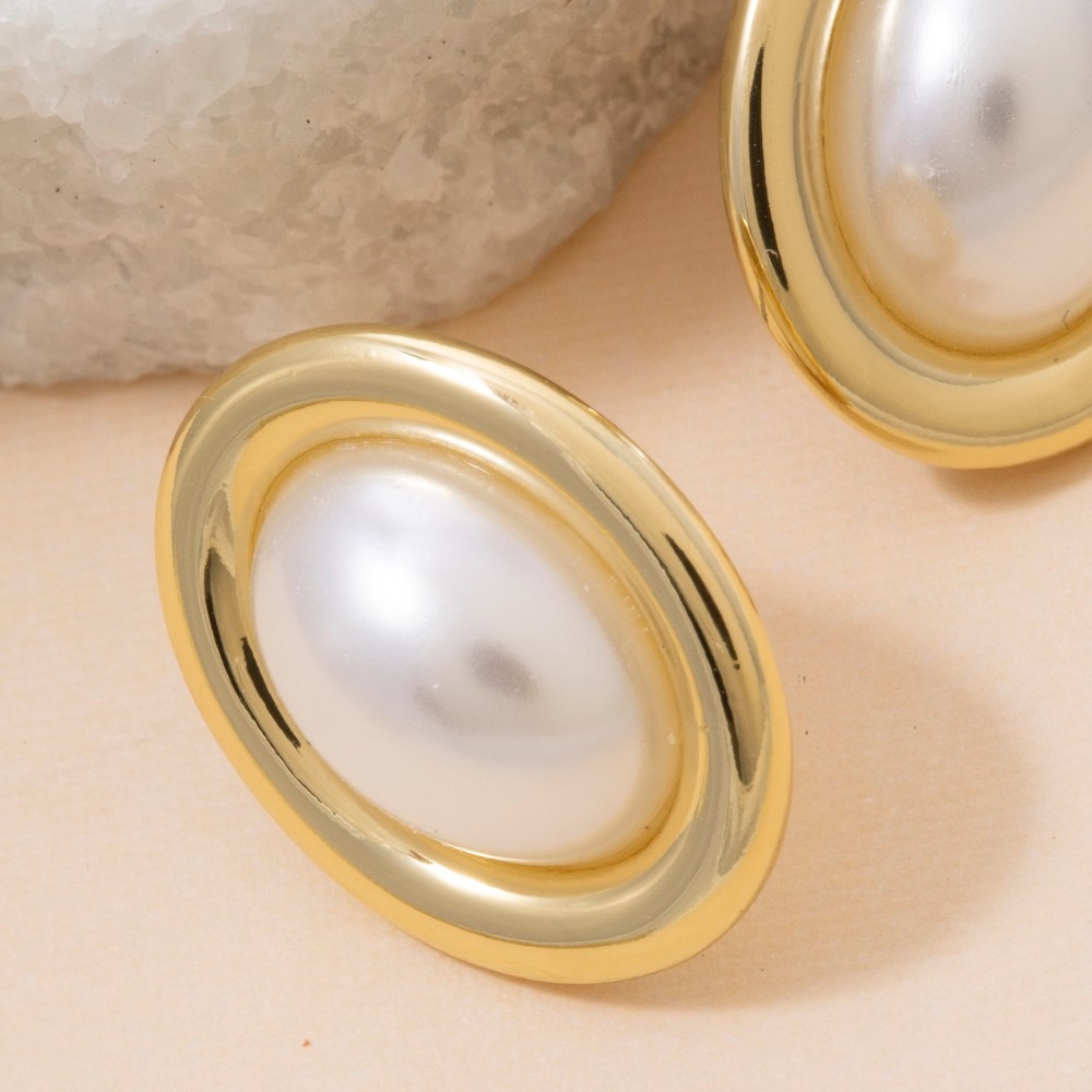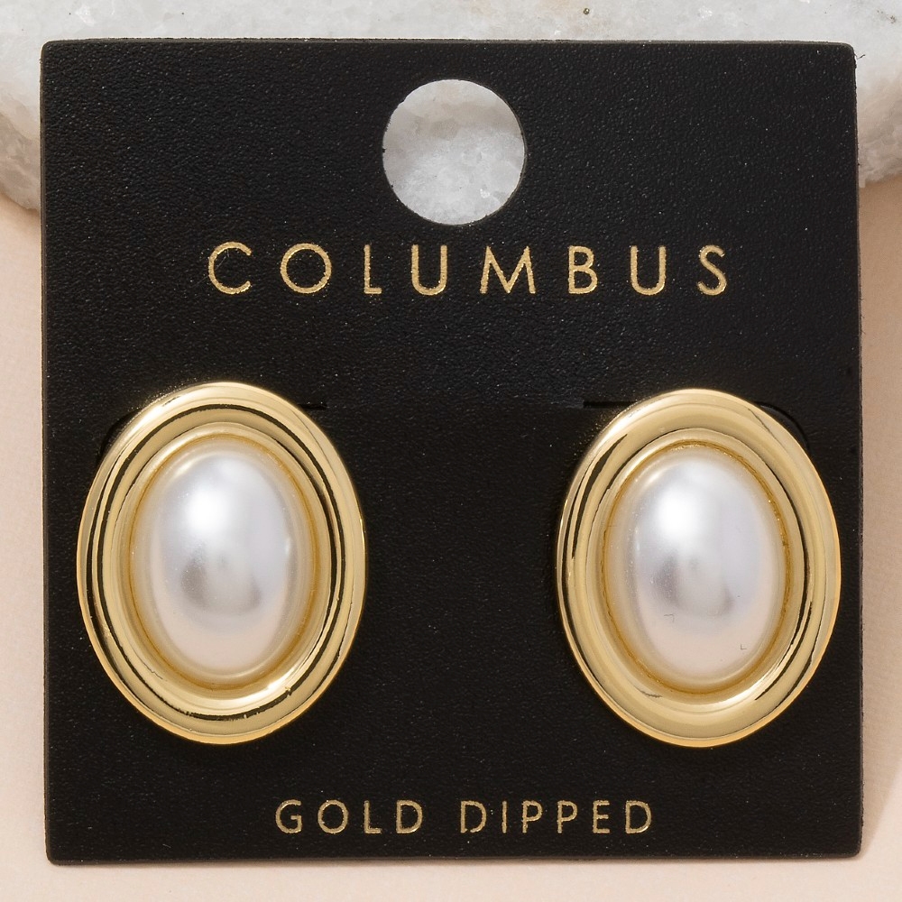 • Bold, daring, and endlessly stylish, this pair of stud earrings emanates an elegant gold dipped vintage oval pearl design. A must-have pair of stud earrings that adds a unique flair to any look. This item is sold in packs of 1.
