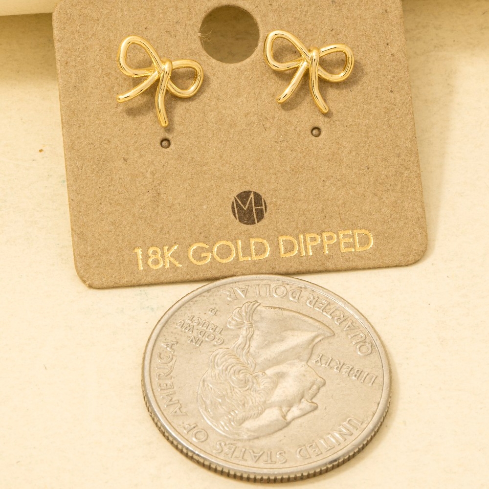 • The epitome of sophistication and style, this pair of stud earrings presents a striking gold dipped wire ribbon bow design. This item is perfect for anyone who loves to accessorize and add some personality to their outfits. Available in G, S. This item is sold in packs of 12.