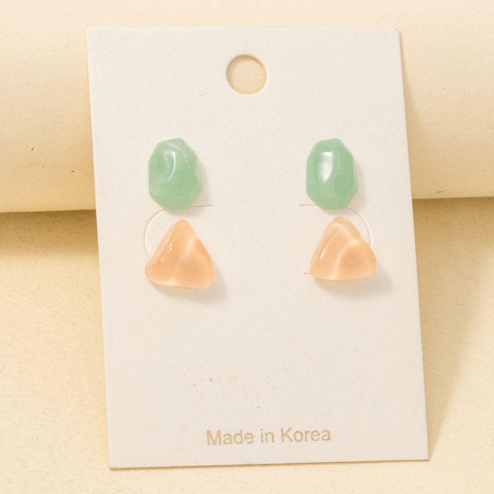 • The perfect way to add some edge to your look, this pair of stud earrings includes a stunning green and pink abstract acrylic shapes set design. Elevate your fashion game with this versatile pair of stud earrings, seamlessly integrating into your signature style. This item is sold in packs of 1.