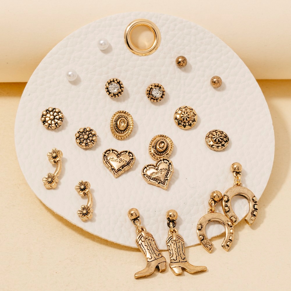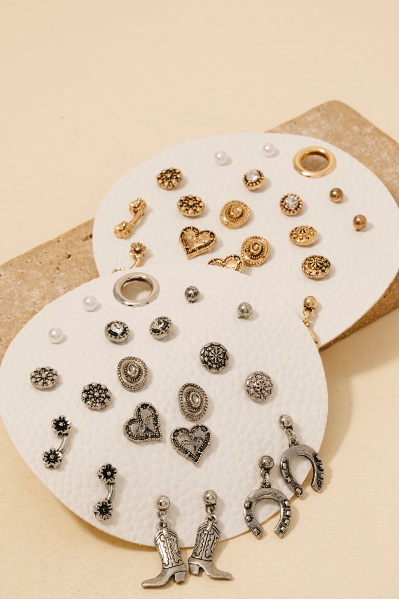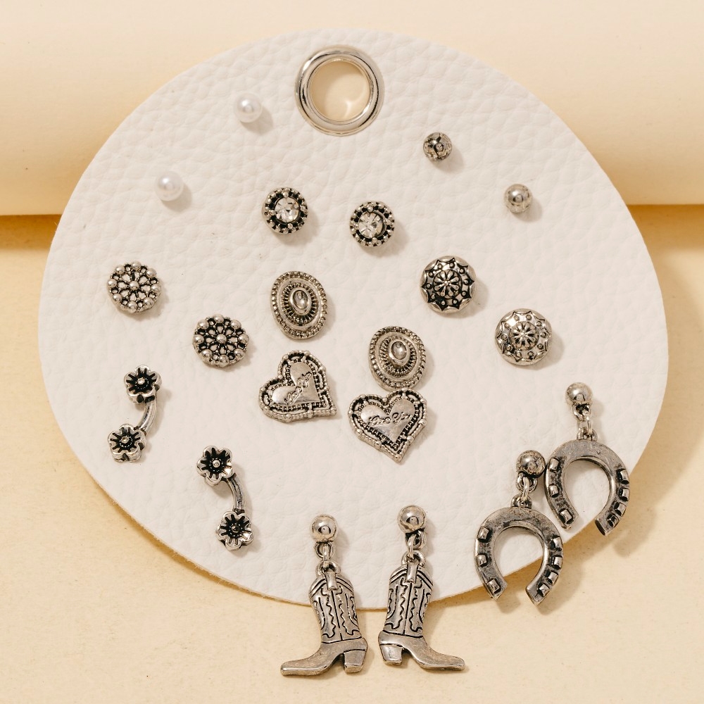 • The perfect way to add some sparkle to your outfit, this pair of stud earrings offers a remarkable hearts and western cowboy western set design. Achieve a perfect balance of style and sophistication with this versatile pair of stud earrings, the ultimate choice for the fashion-savvy individual. Available in AGCRM, ARCRM. This item is sold in packs of 1.