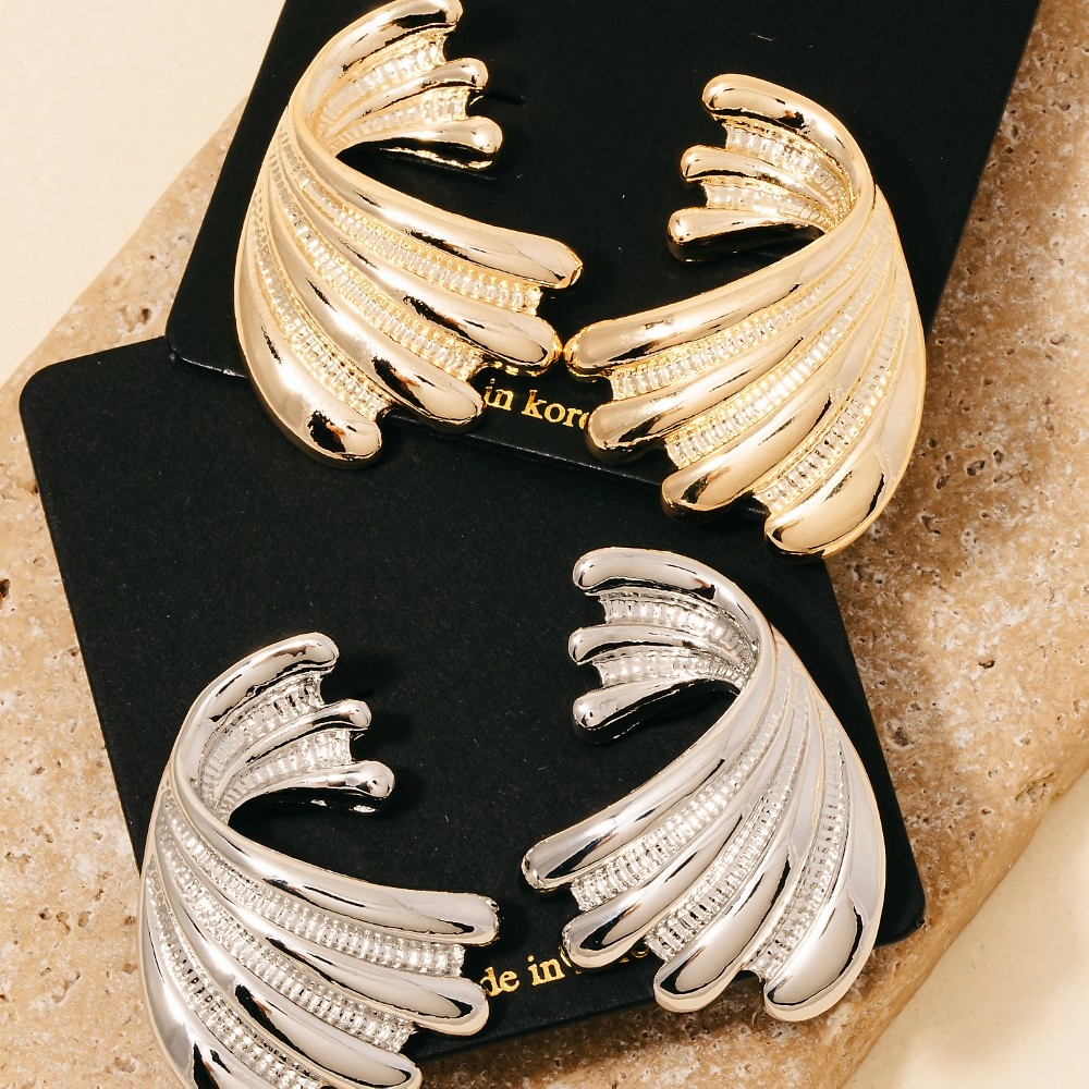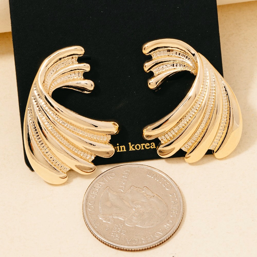 • Upgrade your pair of stud earrings game, this pair of stud earrings boasts a magnificent intricate metallic wings design. This versatile pair of stud earrings adds a touch of elegance to any outfit. This item is sold in packs of 1.