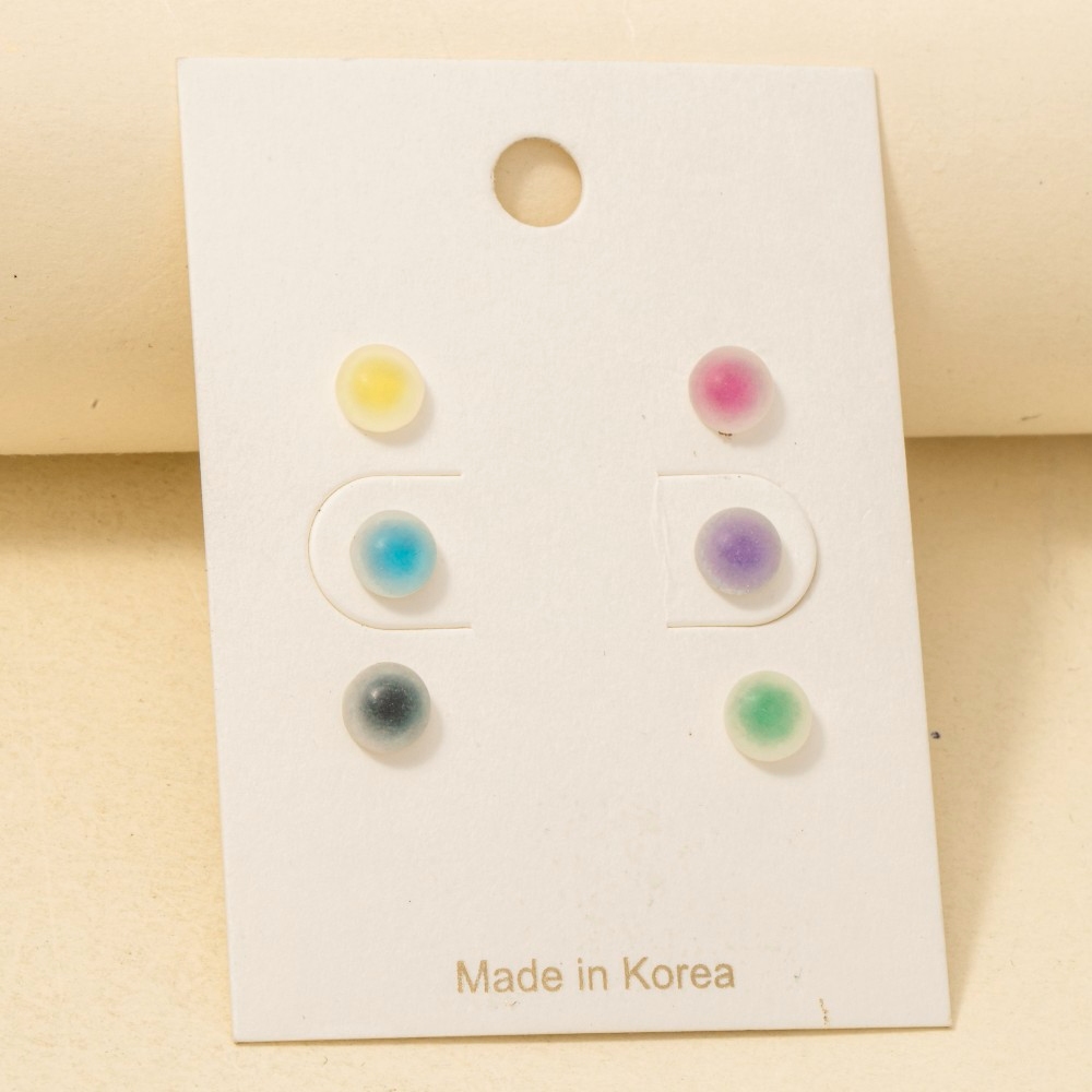 Upgrade your pair of stud earrings game, this pair of stud earrings incorporates a remarkable matte acrylic gradient circle design. This pair of stud earrings is an effortless way to add some personality to your outfit. This item is sold in packs of 1.