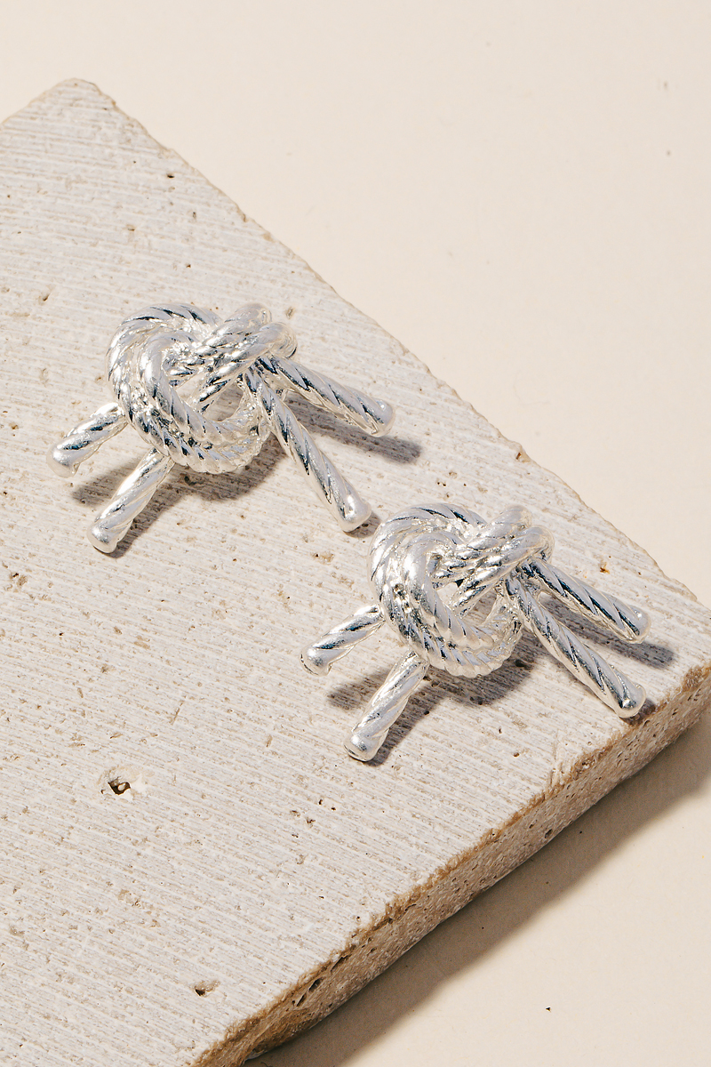 A stunning addition to any jewelry collection, this pair of stud earrings includes a stunning metallic tied rope knot design. A perfect addition to your wardrobe that effortlessly enhances your style. Available in GD and RH. This item is sold in packs of 1.