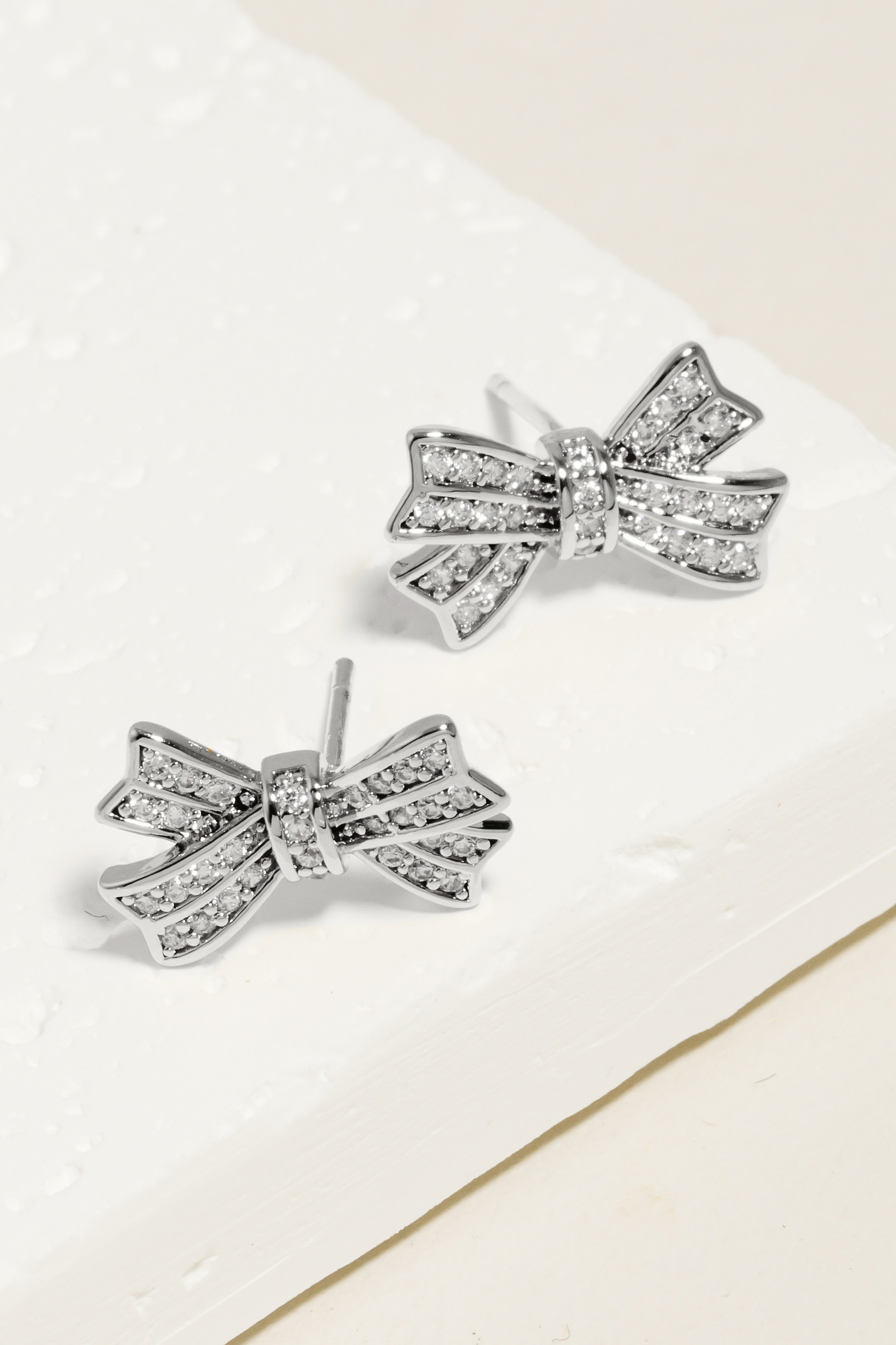• This piece is the epitome of sophistication and elegance, this pair of stud earrings emanates an elegant mini pave ribbon bow design. This item adds the perfect finishing touch to any outfit, making it stand out from the crowd. Available in G and S. This item is sold in packs of 1.