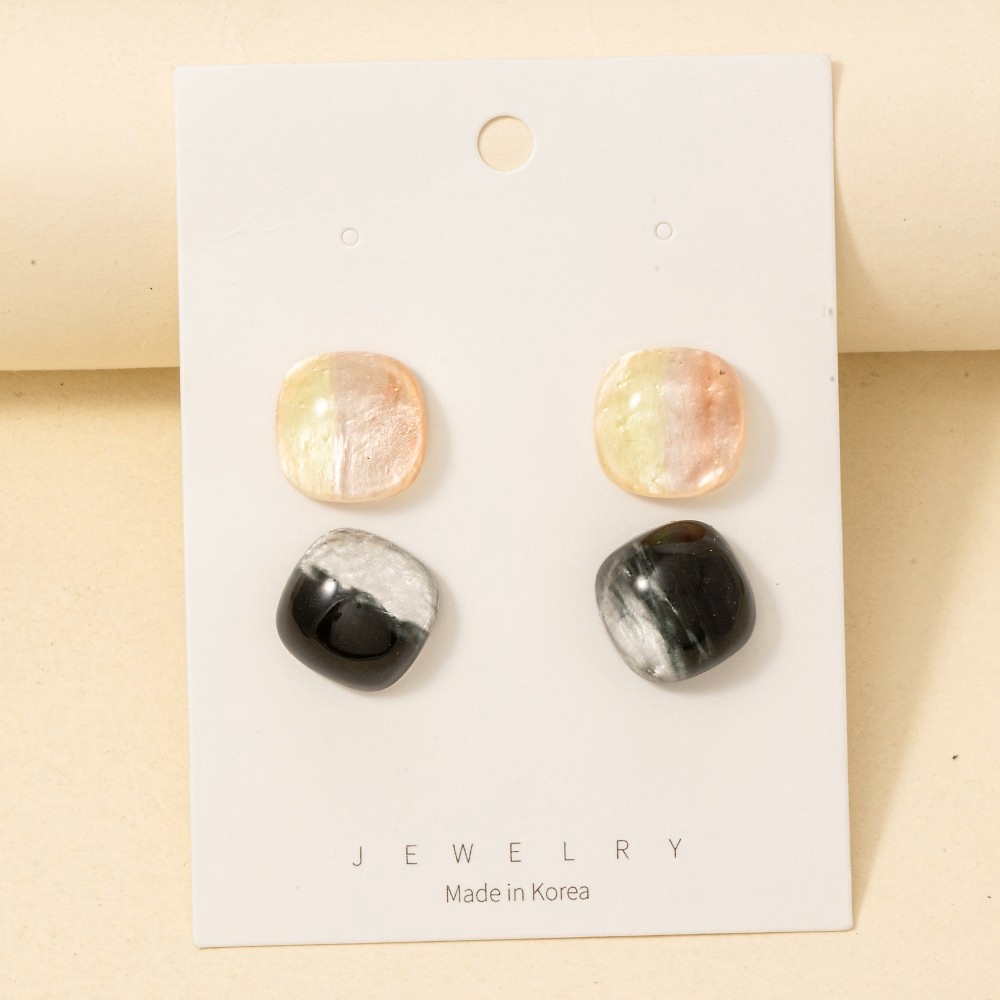 A classic design with a modern twist, this pair of stud earrings carries a charming mixed color acrylic rounded square set design. Perfect for any occasion, this versatile pair of stud earrings will enhance any outfit you wear. This item is sold in packs of 1.
