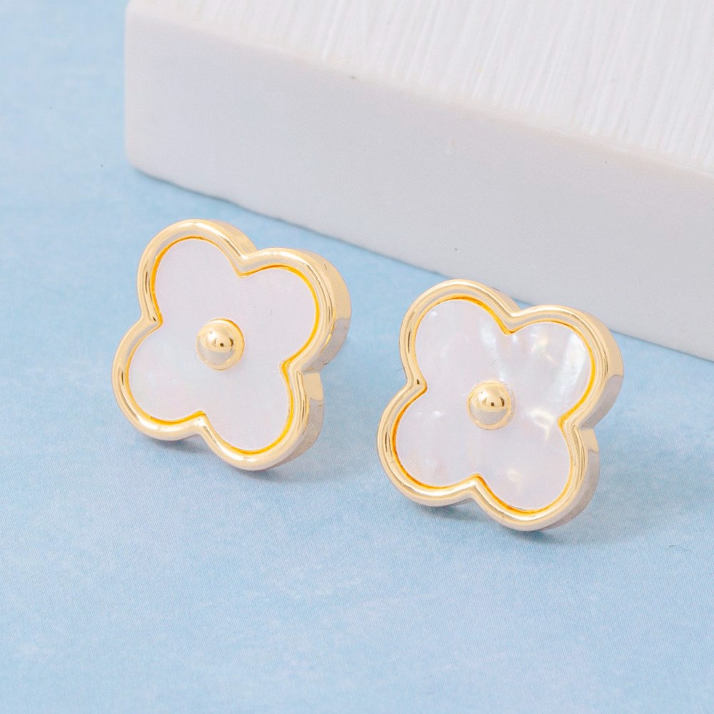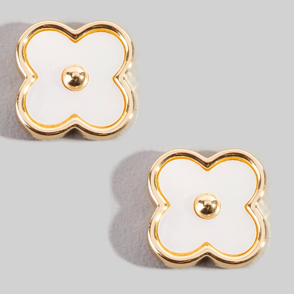 • Effortlessly stylish and always on-trend, this pair of stud earrings features a distinct mother of pearl clover design. Elevate your fashion ensemble effortlessly with this versatile pair of stud earrings, a stylish choice for the modern trendsetter. Available in GM. This item is sold in packs of 1.