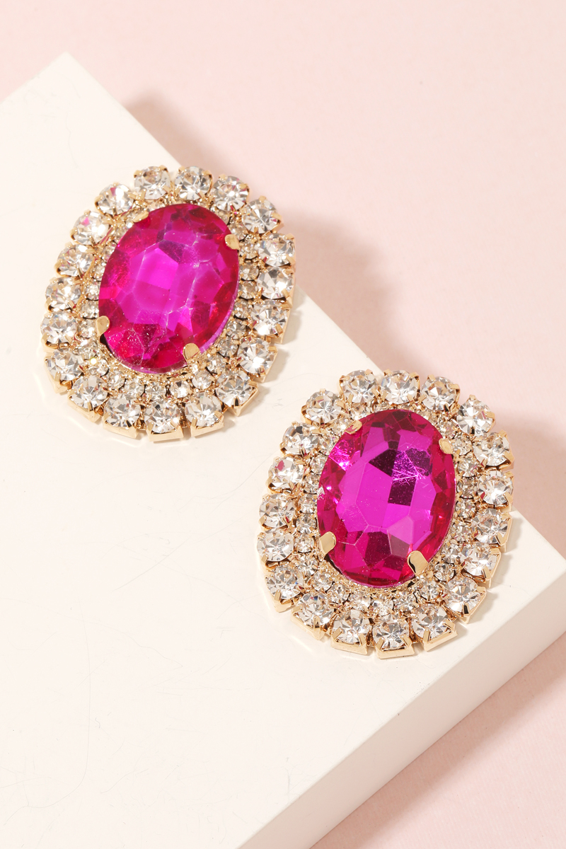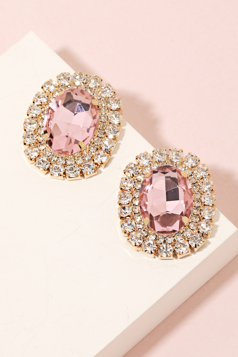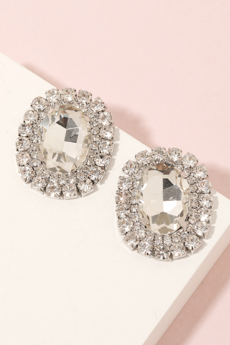 • Add a touch of elegance and glamour to your look with this pair of stud earrings displays a unique oval pave trim stud earrings design. Perfect for dressing up your favorite outfit, this accessory is a must-have. This item is sold in packs of 1.