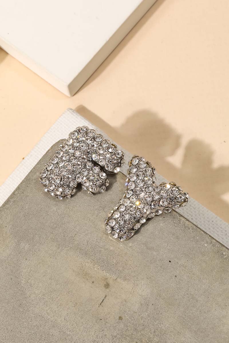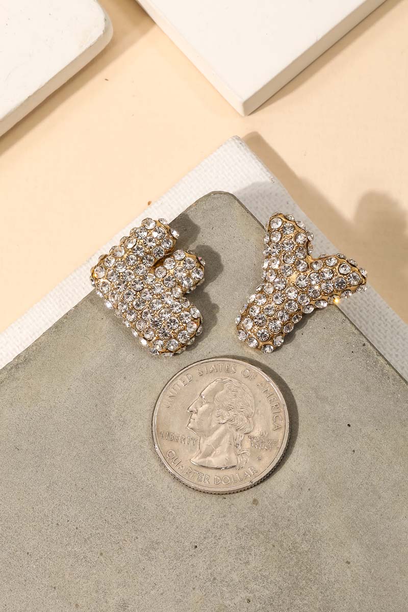 This new must have trending pair of stud earrings features a pave f y stud earrings design. Perfect for the winter! Available in G and S.