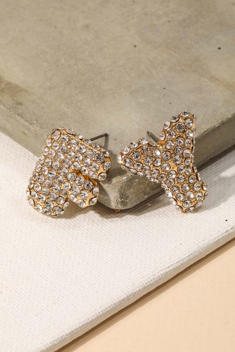 Gold Dipped Cz Pave Bow Ribbon Stud Earrings