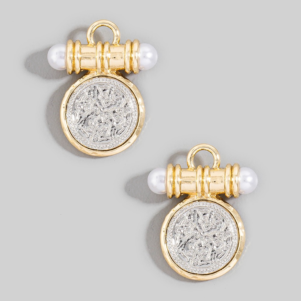 - Perfectly polished and endlessly versatile, this pair of stud earrings features an exceptional pearl bar two tone coin design. Infuse a hint of luxury into your daily attire with this versatile pair of stud earrings, a must-have for those who appreciate timeless elegance. Available in GD. This item is sold in packs of 1.