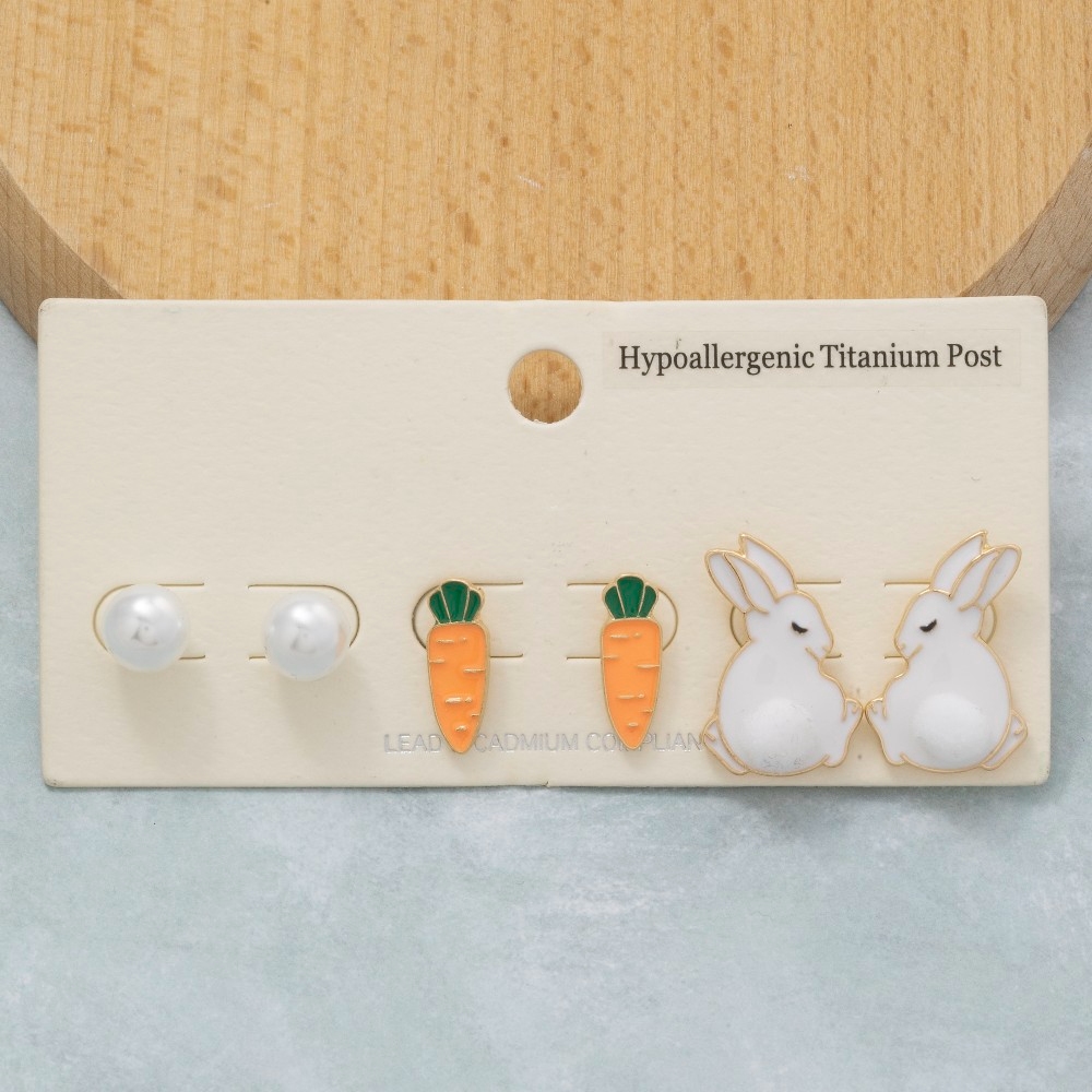 - The perfect way to showcase your unique style, this pair of stud earrings offers a remarkable pearl and enamel carrot bunny set design. A versatile pair of stud earrings that's perfect for any occasion, adding a touch of elegance and style to any outfit. Available in RAB. This item is sold in packs of 1.