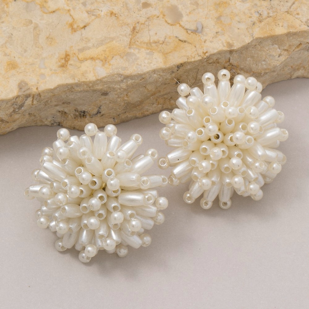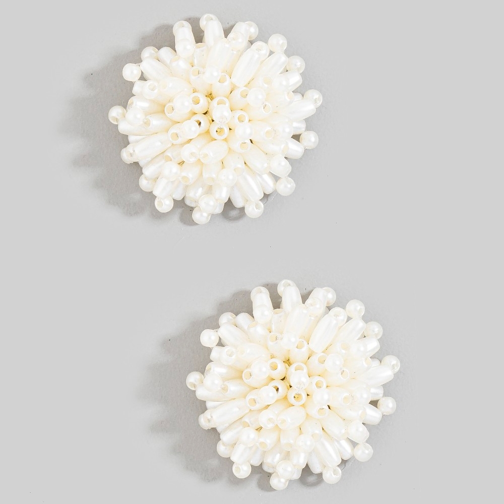 • A true work of art, this pair of stud earrings incorporates a flawless pearl tube beaded cluster design. Add a dash of sophistication to your look with this versatile pair of stud earrings, a must-have for fashion enthusiasts. Available in CRM. This item is sold in packs of 1.