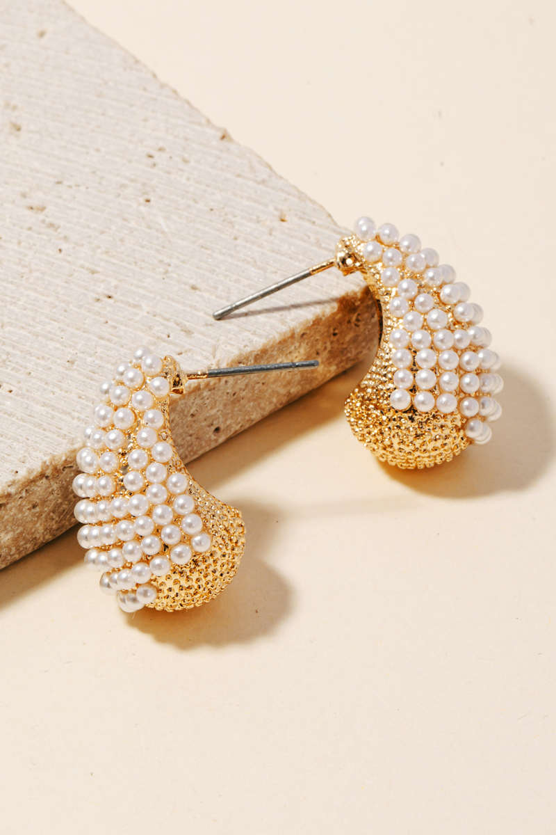 Gold Dipped Pearl Bead Abstract Stud Earrings