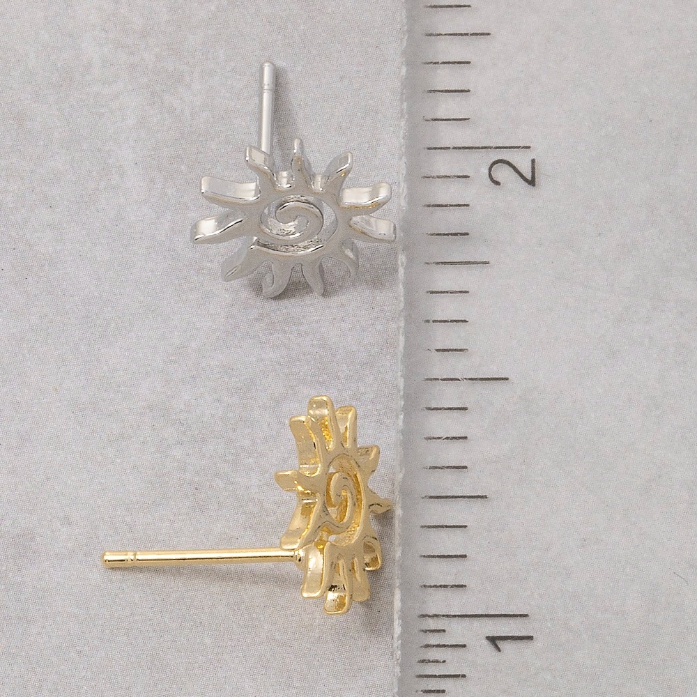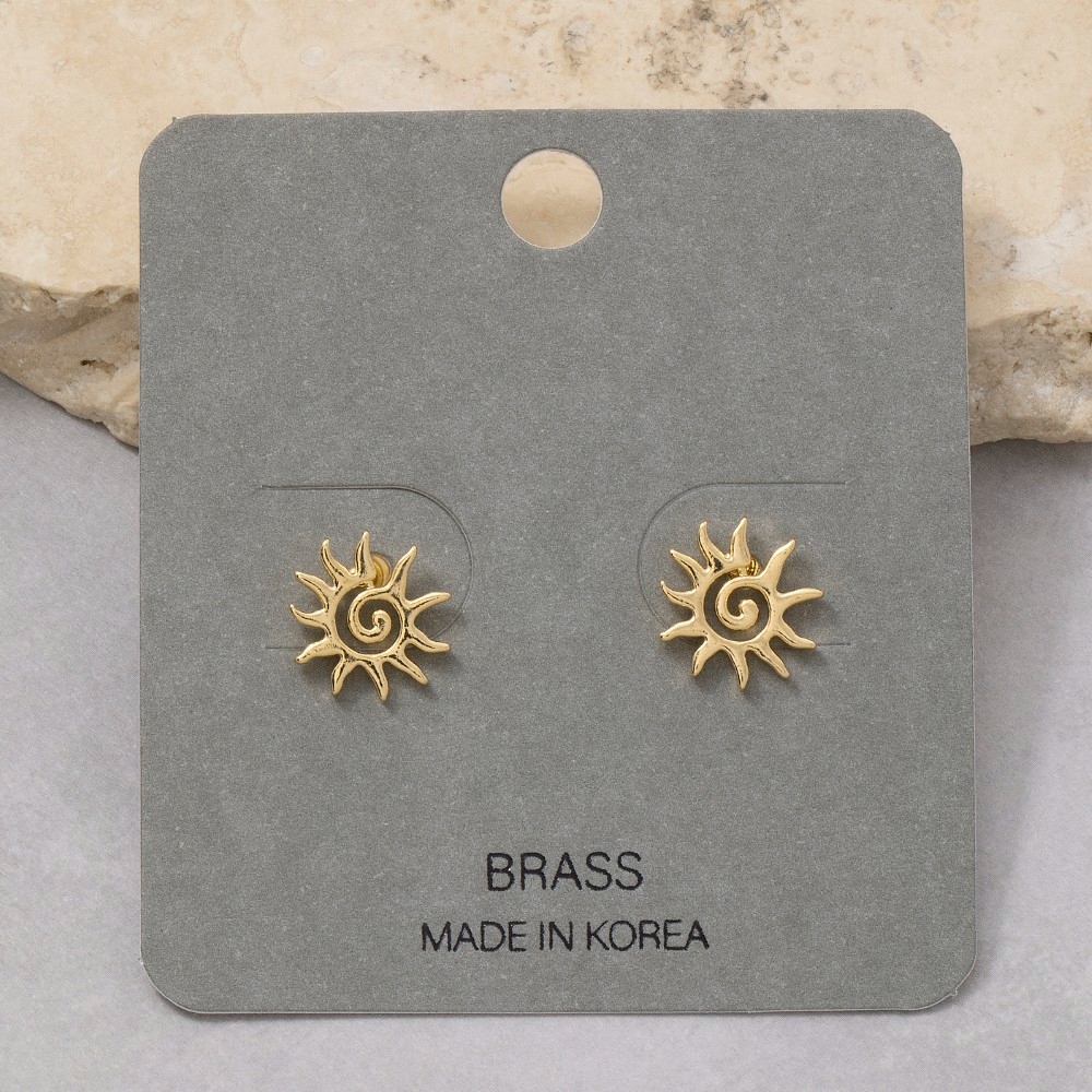 • Sleek, modern, and always stylish, this pair of stud earrings encompasses a grand spiral sun design. Unleash the power of style with this versatile pair of stud earrings, perfect for enhancing the charm of your wardrobe. Available in GD, RH. This item is sold in packs of 1.